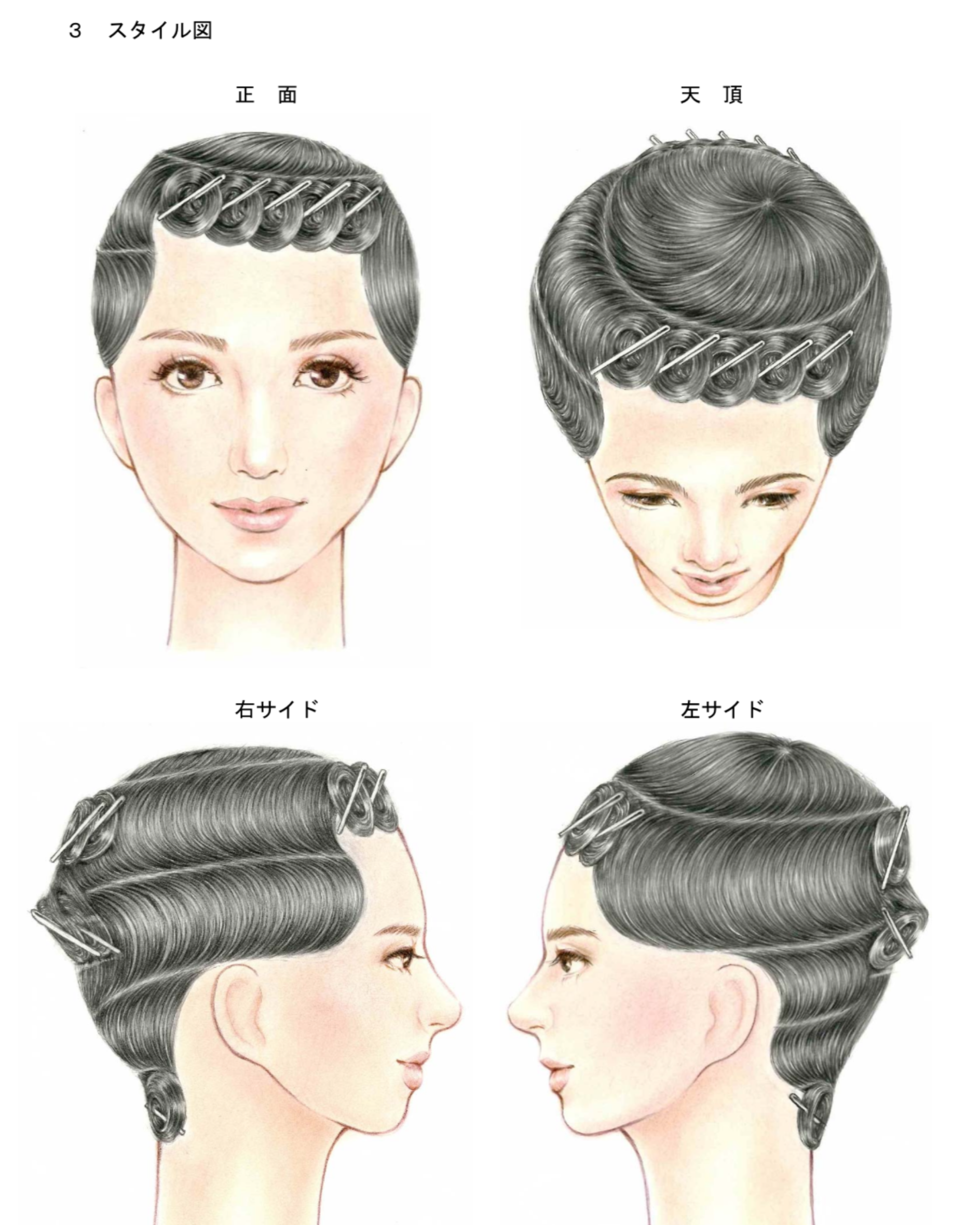 これらの要件を考慮し検討が重ねられた結果、次のフィンガーウェーブ技術とピンカール技術を用いた3種類のスタイルによるセッティング課題がまとめられ、美容師実技試験部会に選定を諮ることとした。
