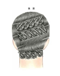 ・成人式や卒業式等の和装等に合わせたスタイルとして多く見られる社会的ニーズに沿って、従来の平面的に流すピンカール技術から立体的に立ち上げるピンカール技術に重点を移し、なおかつ仕上がりを重視したスタイルであること